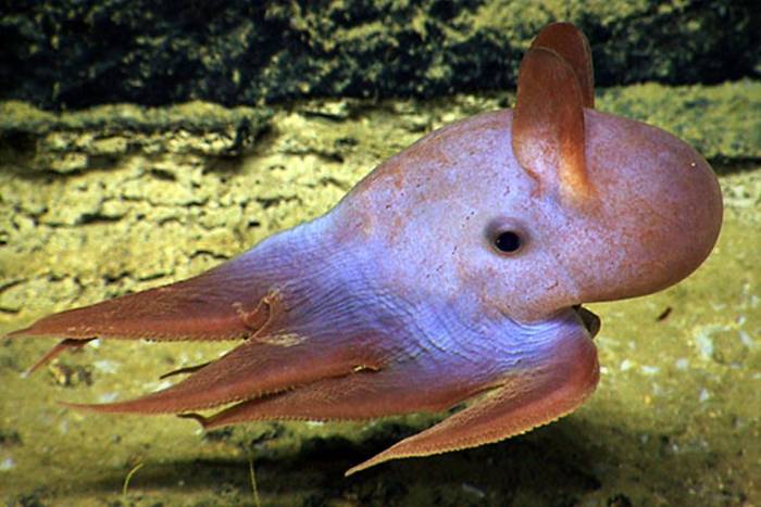 اختاپوس دامبو یک سرده از هشت پای چتری است که نام خود را از شخصیت پویانمایی دامبو ( فیلی که از گوشهای عظیم خود برای پرواز استفاده کرد) گرفته است. پیش از این در بخش جذاب ترین های نمناک خواندید که در طبیعت 15 گونه اختاپوس دامبو وجود دارد که مانند تمامی اختاپوس های چتری بازوهایشان از طریق پوست به یکدیگر متصل شده و ظاهری شبیه به چتر دارند. اختاپوس دامبو در عمق چهار هزار متری اقیانوس (و شاید عمیق تر) زندگی می کند و قادر به تحمل آب بسیار سرد است. اختاپوس های دامبوی ماده در طول مراحل مختلف رشد خود تخمک دارد و بعد از جفت گیری با اختاپوس نر می توانند اسپرم ها را برای مدت های طولانی در بدن خود حمل کند و در شراط مناسب هر زمان که خواستند، اسپرم ها را به تخمک آماده خود انتقال دهند.